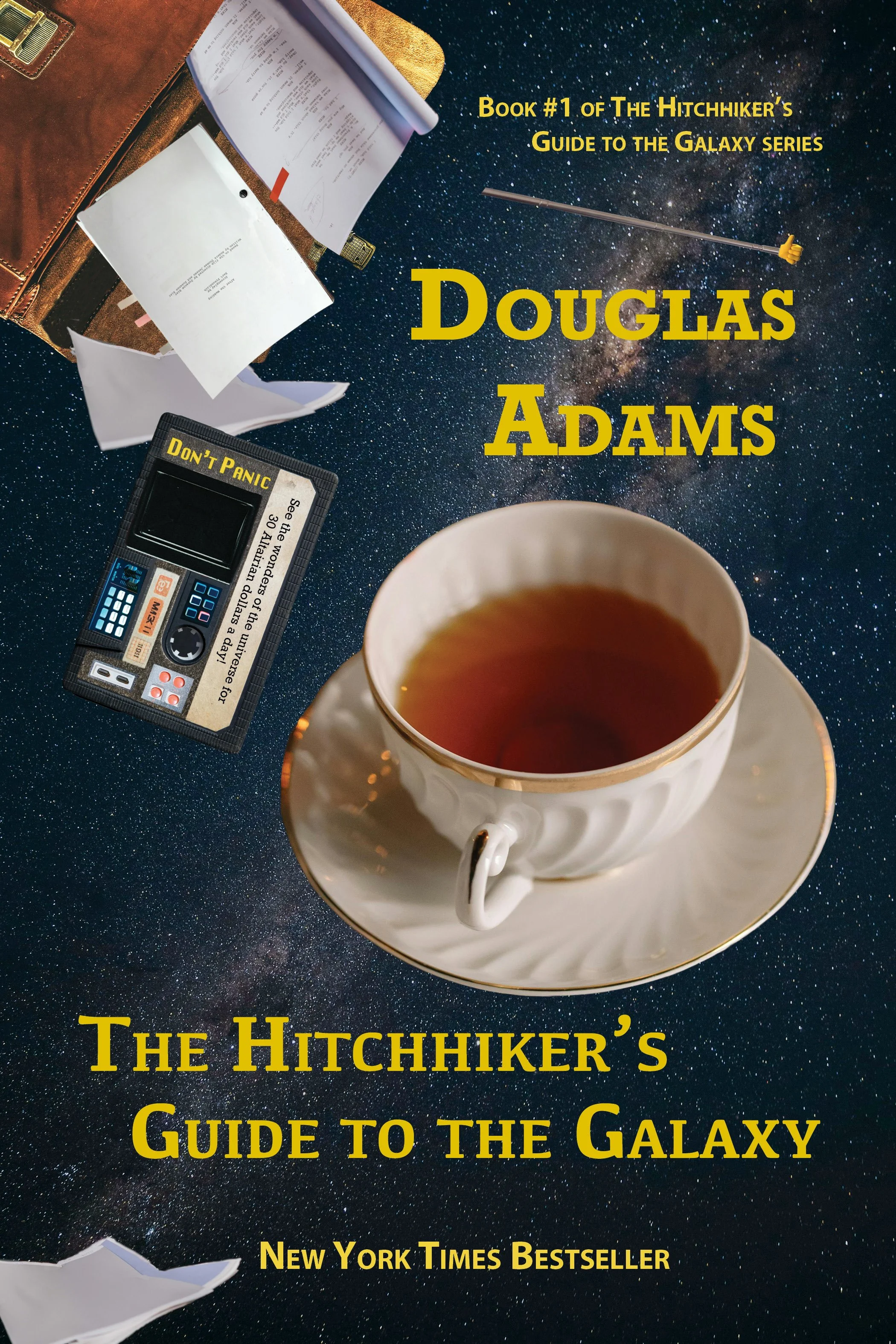 The Hitchhiker’s Guide To The Galaxy by Douglas Adams (1979); includes full spreads with jacket flap design, and standalone cover designs